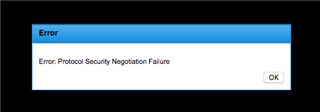 Error: Protocol Security Negotiation Failure.