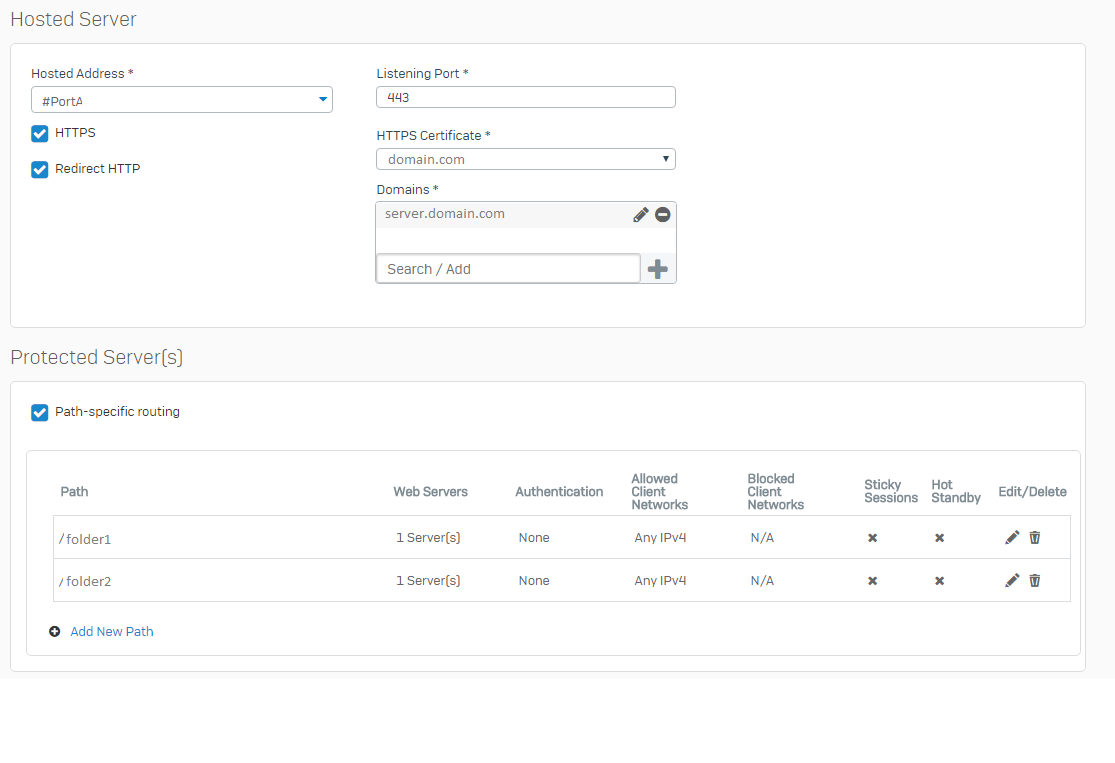 Is it remotely possible to create paths that do not coincide with the protected server's path? The idea is this: When you request server.domain.com you are showed /folder1 (which is in the /path) and when you request server.domain.com/folder2 you are showed /another_folder on the same server. All this in one WAF Business rule since it would not be possible to use the same domain (server.domain.com) for another WAF business rule.