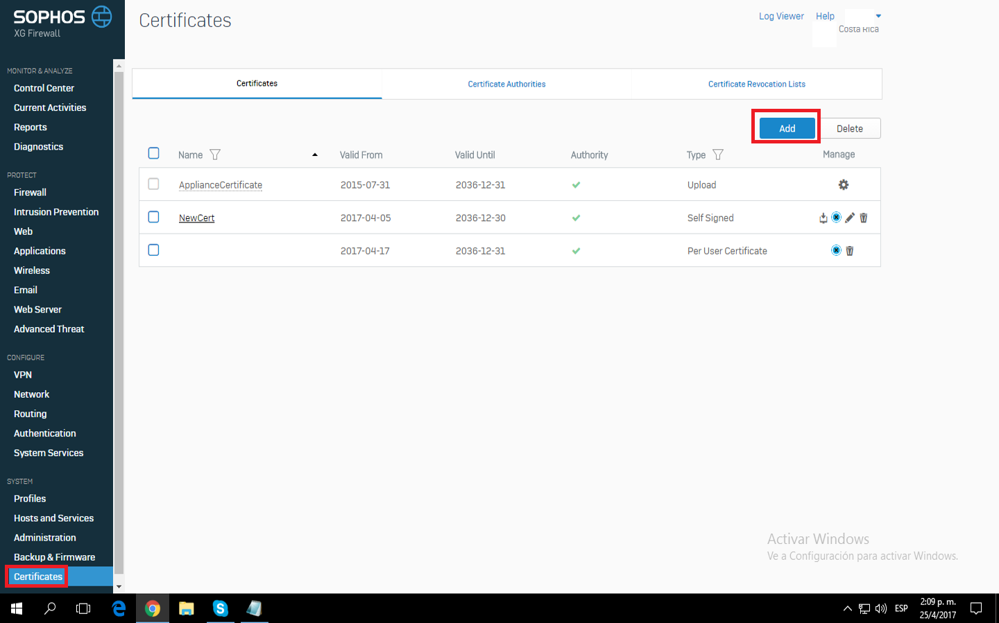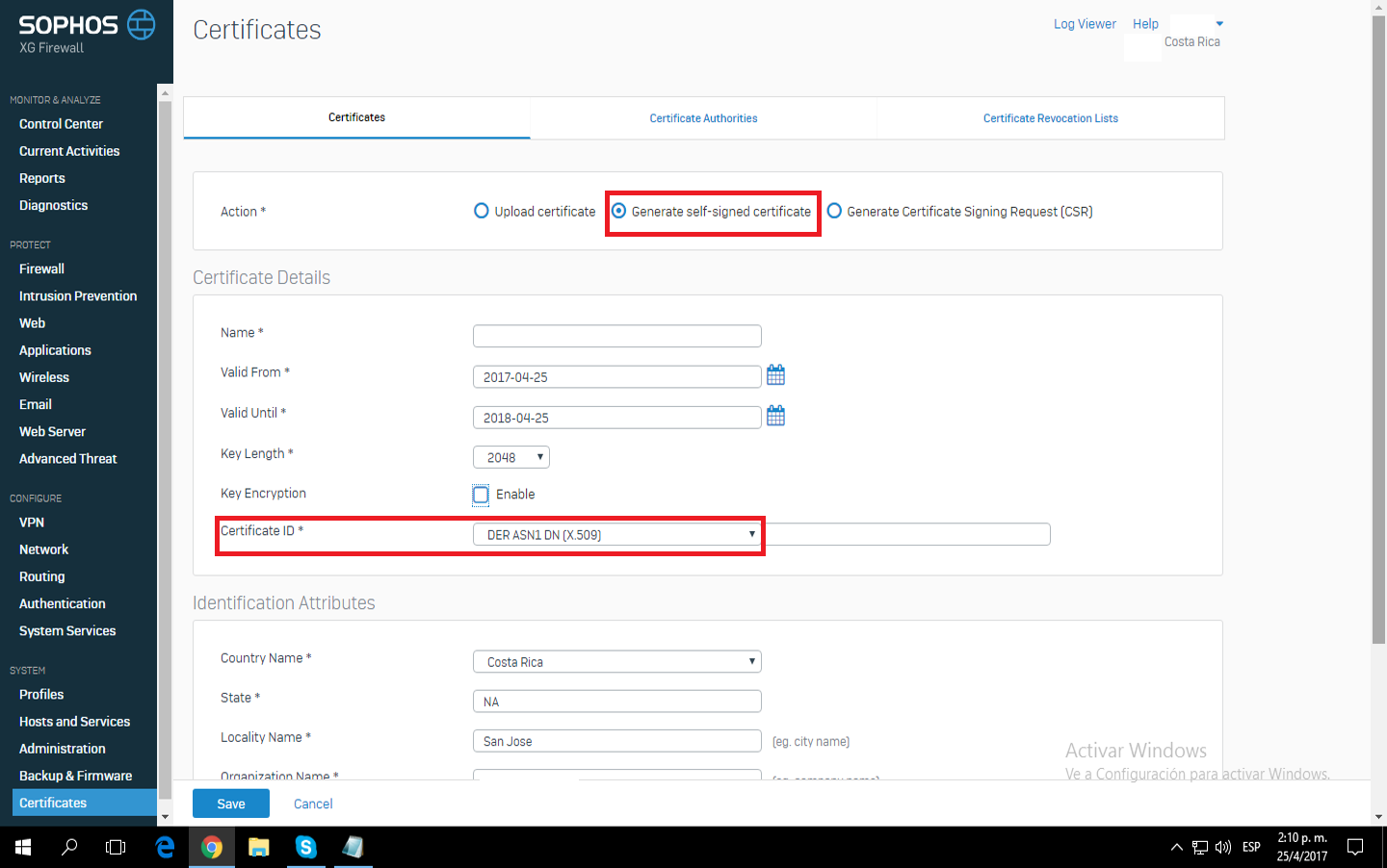 If such name is entered as the registered party, the XG firewall uses this name for the creation of the certicates. So far, no problem.