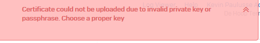 i was having a similar issue, where the page was giving me the "Certificate could not be uploaded due to invalid private key or passphrase. Choose a proper key" message.