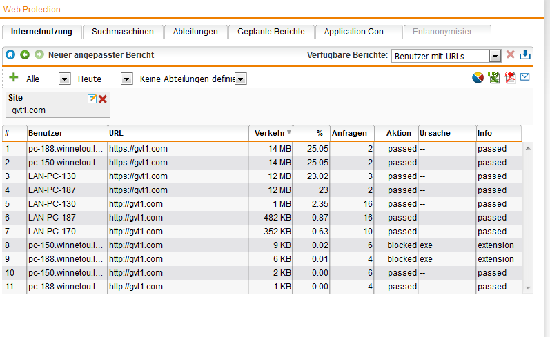 ich habe hier ein seltsames Problem. Da die Seite gvt1.com in den täglichen Berichten erschien wollte mein Chef diese Seite geblockt haben.