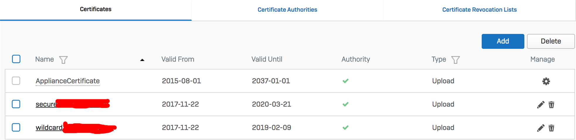 I've installed 2 certificates on Sophos XG v17 as shown in the picture below: