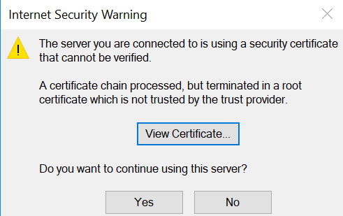 Every time I start the Outlook client, I get the message below and I have to click Yes.  I have installed this certificate on every folder in User and Local Machine Cert Store.  What can I do so that I dont get this Warning every time I start Outlook.