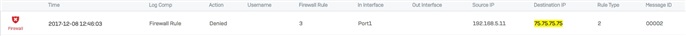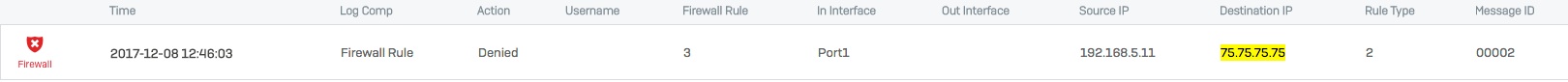 Dec  8 12:46:03 192.168.5.212 device="SFW" date=2017-12-08 time=12:46:03 timezone="PST" device_name="SFVH" device_id=[ DEVICE_ID_MASKED ] log_id=010102600002 log_type="Firewall" log_component="Firewall Rule" log_subtype="Denied" status="Deny" priority=Information duration=0 fw_rule_id=3 policy_type=2 user_name="" user_gp="" iap=2 ips_policy_id=0 appfilter_policy_id=0 application="" application_risk=0 application_technology="" application_category="" in_interface="Port1" out_interface="" src_mac=[ MAC_MASKED ] src_ip=192.168.5.11 src_country_code= dst_ip=75.75.75.75 dst_country_code= protocol="UDP" src_port=40259 dst_port=53 sent_pkts=0  recv_pkts=0 sent_bytes=0 recv_bytes=0 tran_src_ip= tran_src_port=0 tran_dst_ip= tran_dst_port=0 srczonetype="" srczone="" dstzonetype="" dstzone="" dir_disp="" connid="" vconnid="" hb_health="No Heartbeat" message="" appresolvedby="Signature"