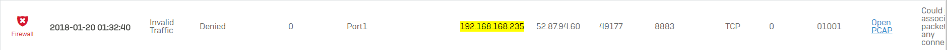 • The above log shows that there is no rule associated so the traffic is denied. Assuming that your iRobot is in your LAN zone try the following: