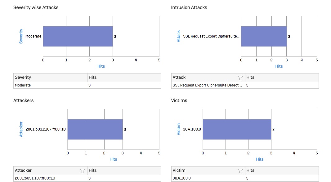 I've noticed these "attacks" listed on the control centre screen for the past couple of days. It is interesting considering that they do not originate from my LAN and are not directed at my LAN. The attacks are shown as "SSL Request Export Ciphersuite Detection" coming from an external IPv6 directed to an external IPv4. The attacks were listed as moderate and the packets were not dropped. I'm getting about 3 attacks per day.