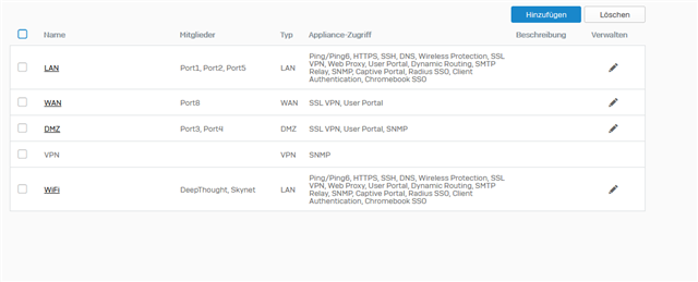Bei den Appliance Zugriff ist alles aktiviert in den Zonen.