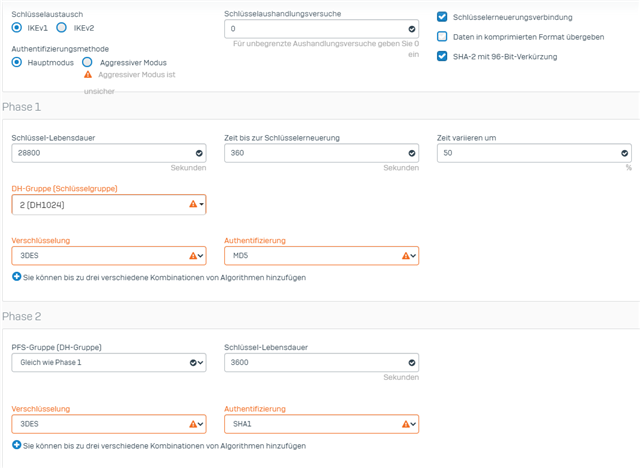 Nun habe ich Probleme bei den VPN Site2Site Verbindungen.