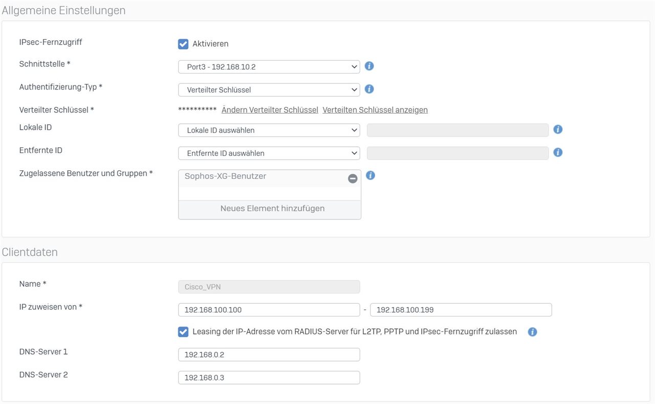 gerne würde ich die Sophos XG 18 MR5 die Funktion VPN mit IPSec Fernzugriff nutzen.