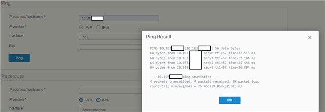 Ein PING von 172.25.1.0 zu 10.103.0.0 resultiert leider in einem Timeout.