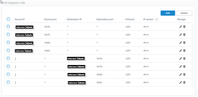 Ich habe in der Firewall schon folgende Konfigurationen vorgenommen, jedoch bisher ohne Erfolg: