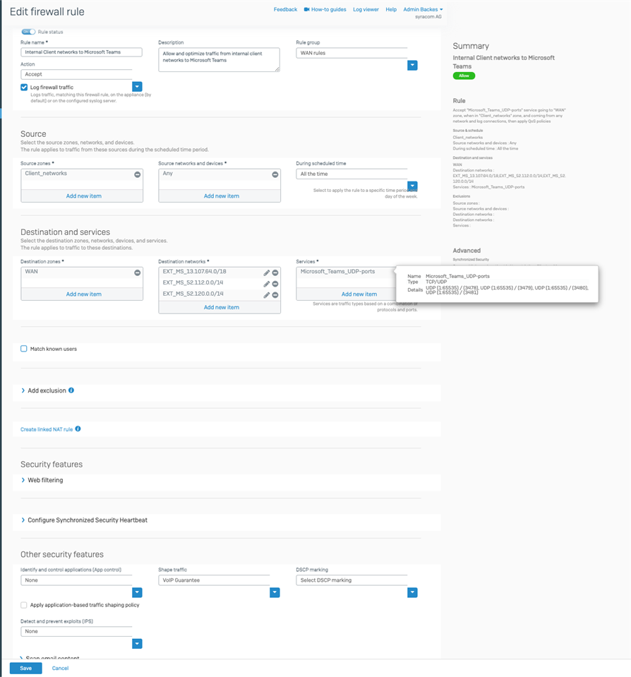 Diese Probleme treten nur auf, wenn die Kollegen hier im Büro sind uns somit über unsere Sophos Firewall an der Teams Konferenz teilnehmen.