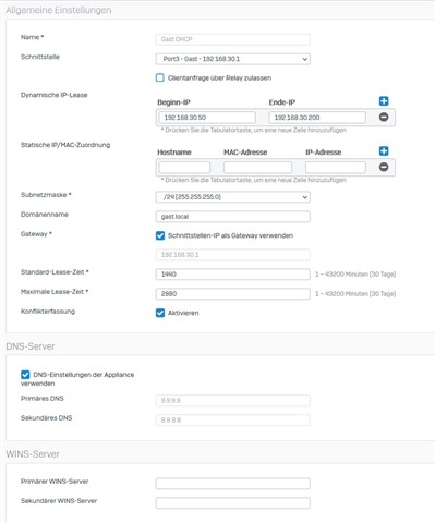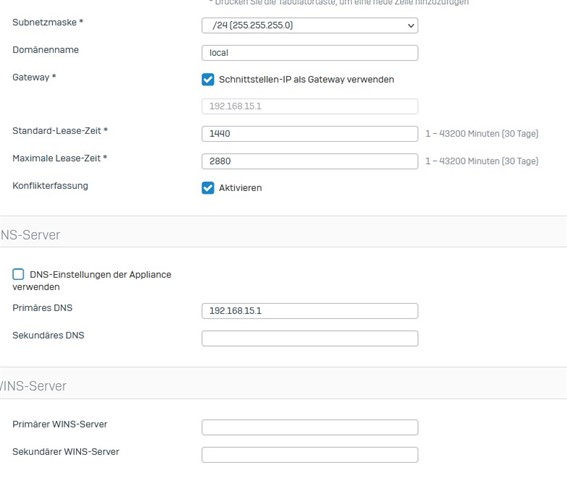 Ich versuche gerade von meiner UTM auf die Sophos XG umzustellen. Dabei möchte ich mein Heimnetz gleich auf drei VLAN's aufteilen. Für jedes VLAN habe ich DHCP konfiguriert. Beim internen VLAN mit dem Default DHCP scheint alles sauber zu laufen. Mein Testnotebook bekommt seine IP und kommt auch ins Internet.