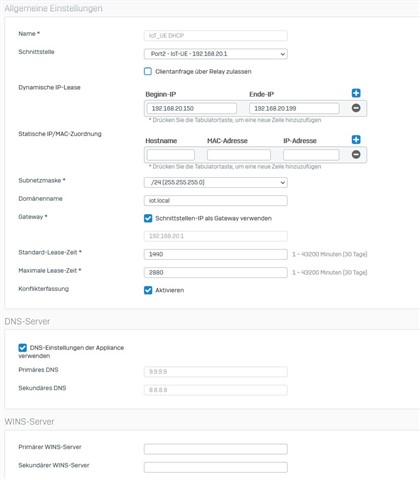Beim Gast und IoT_UE VLAN bekommt das Notebook keine IP. Ich habe dann dem Notebook im Gast VLAN manuell eine passende IP gegeben. Danach konnte ich die Fritzbox hinter der Firewall pingen und auch Webseiten aufrufen. Aber ich habe keinen Plan, was ich an der Konfiguration ändern muss, damit das Notebook im Gast und IoT_UE VLAN eine IP per DHCP bekommt.