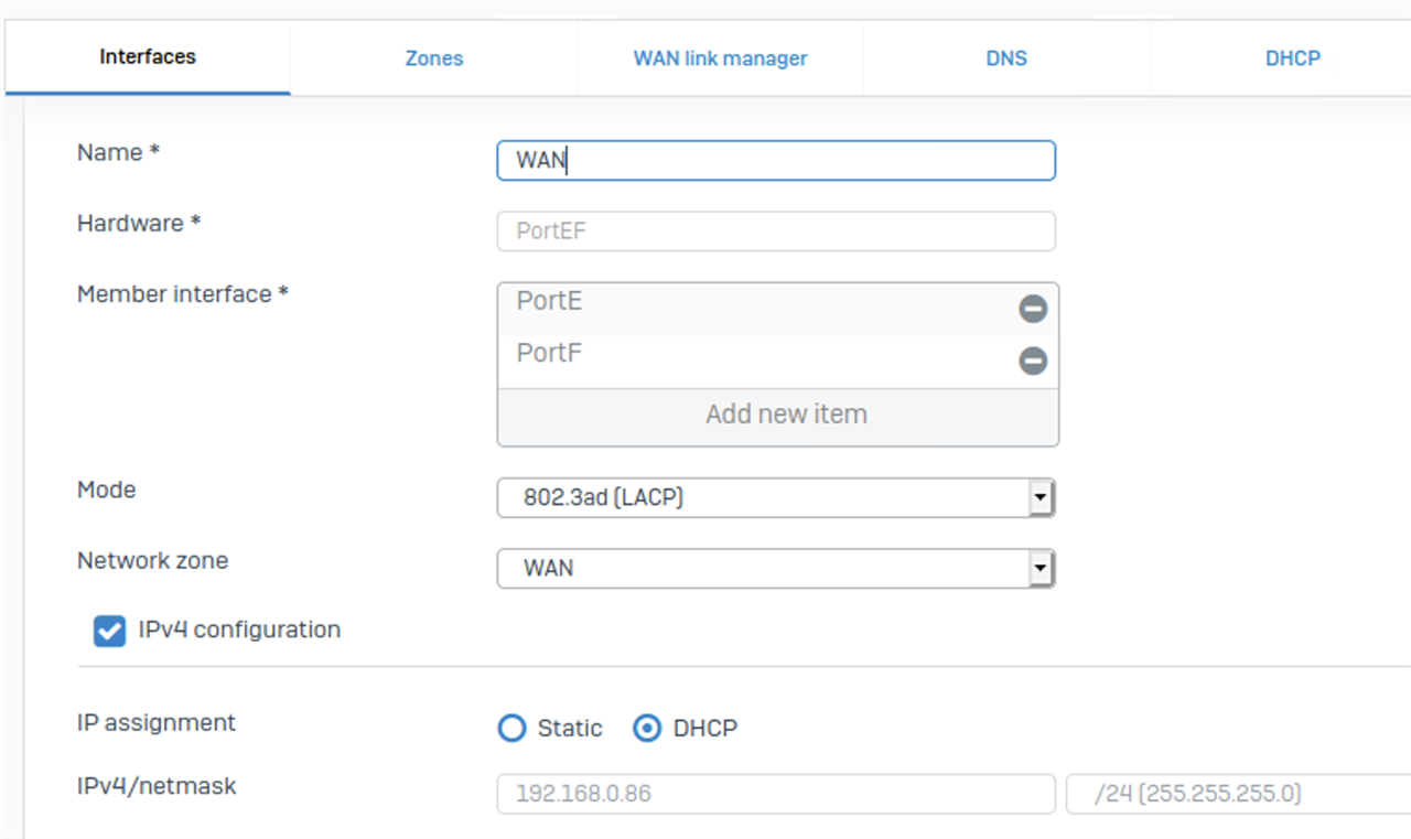 Ich würde gerne die 2,5 Gbit/s Schnittstelle meiner Fritzbox 6660 Cable an den WAN-Port der vSophos anschließen und über Link Aggregation die Bandbreite für mein Netzwerk optimieren.