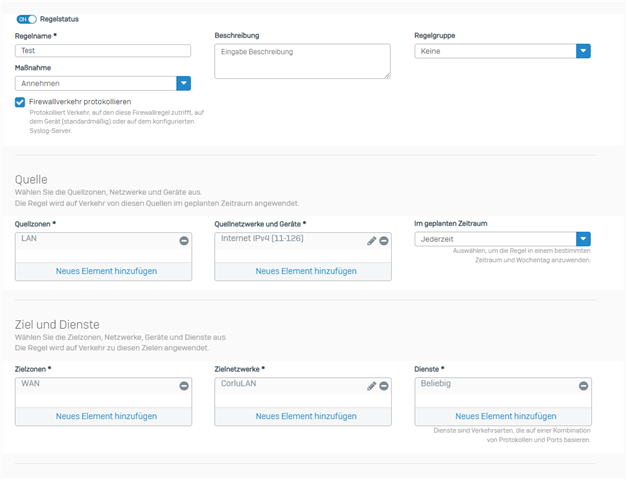 Was meinst du mit WAN - ANY ? Zielnetzwerk und Zielzone in der Firewall Regel ?