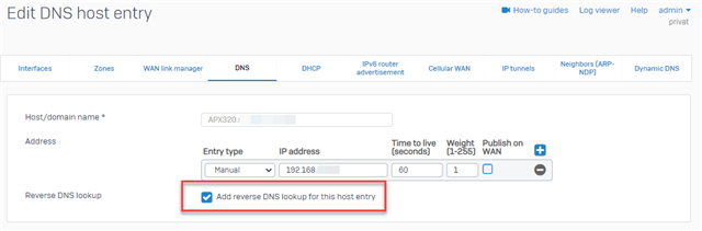 Sophos XG 210 reverse dns einrichten