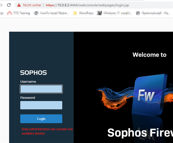 Login-Seite aktuell auxilary Firewall (hier komme ich mit meinem User nicht rein, das ist korrekt so):
