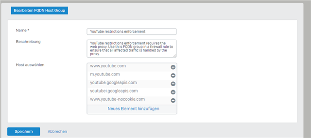 Habe die vordefinierten Gruppen von Sophos verwendet