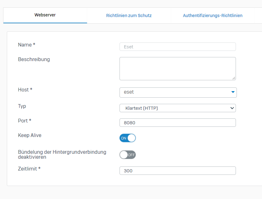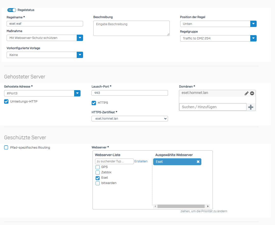 Die Firewall Regel habe ich natürlich mit Webschutz eingerichtet.