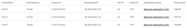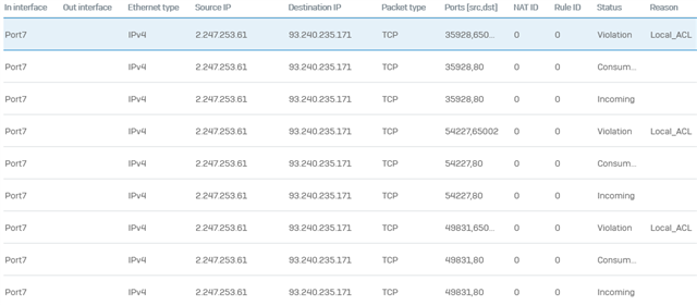 • Ich kann im Packet Capture sehen, dass Pakete an dem WAN Port ankommen, z.B. ICMP oder Anmeldung am Userportal Port 9443. Wenn ich aber HTTP oder HTTPS versuche, dann sehe ich das hier...