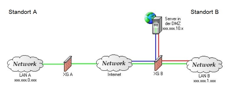 --> XG am Standort "B".hat einen öffentlich erreichbaren Server in der DMZ
