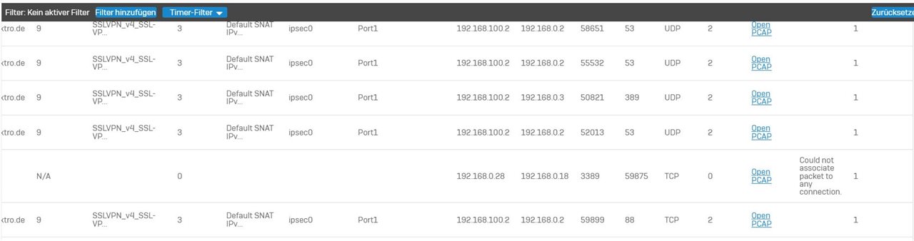 Ich sehe jedoch immer wieder Verbindungen die verworfen werden, da die Pakete nicht zugeordnet werden konnten als Ziel ist der Port 1 (192.168.0.18) von der XG.