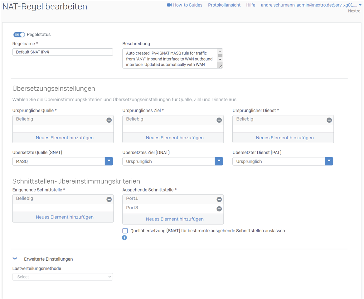 ich habe eine Virtuelle Sophos XG Installation mit 2 Netzwerk Ports (Port 1: LAN: 192.168.0.18 - 255.255.255.0;  Port3: WAN: 192.168.10.2 - 255.255.255.0)
