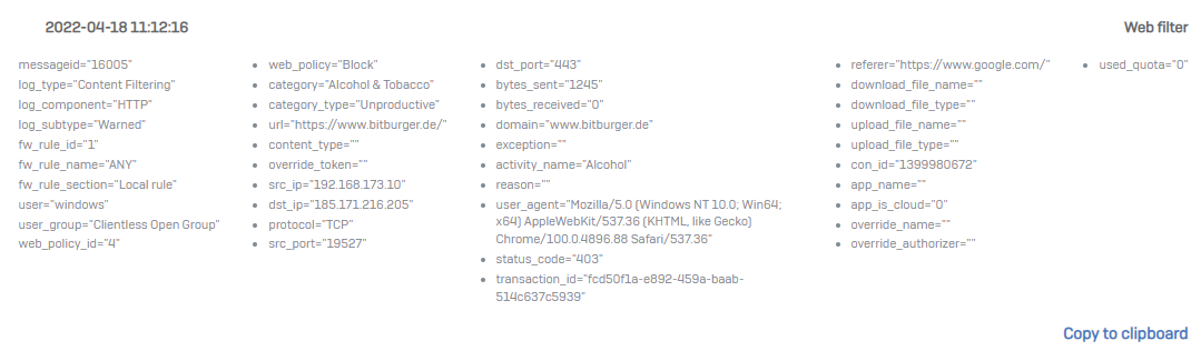 Aus der technischen Perspektive ist das korrekt, denn die Firewall muss es erlauben, damit der Proxy es blockieren kann. Das Logging im Logviewer sieht nur auf den ersten Blick nicht korrekt aus.