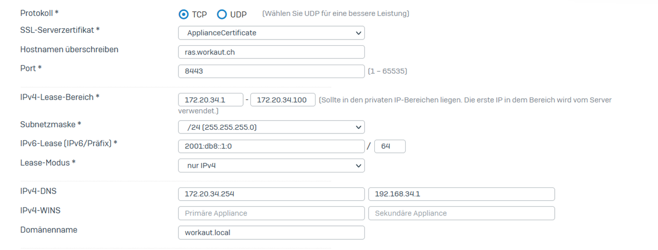 Beim Sophos Remote Access habe ich die externe.vpn.ip.254 eingetragen, weil er mir lokal die 254 als DNS Server angegeben hat.