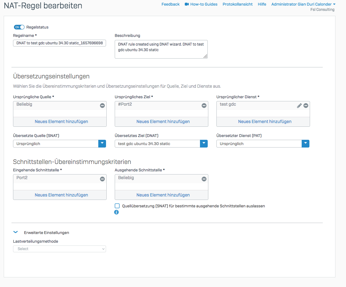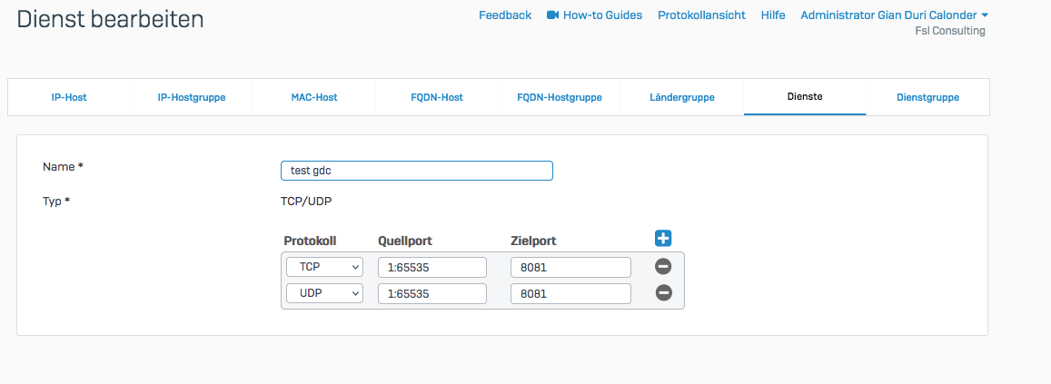 Port Eingehend ist ja 1:65535 (haben einen Router davor gehabt bisher).