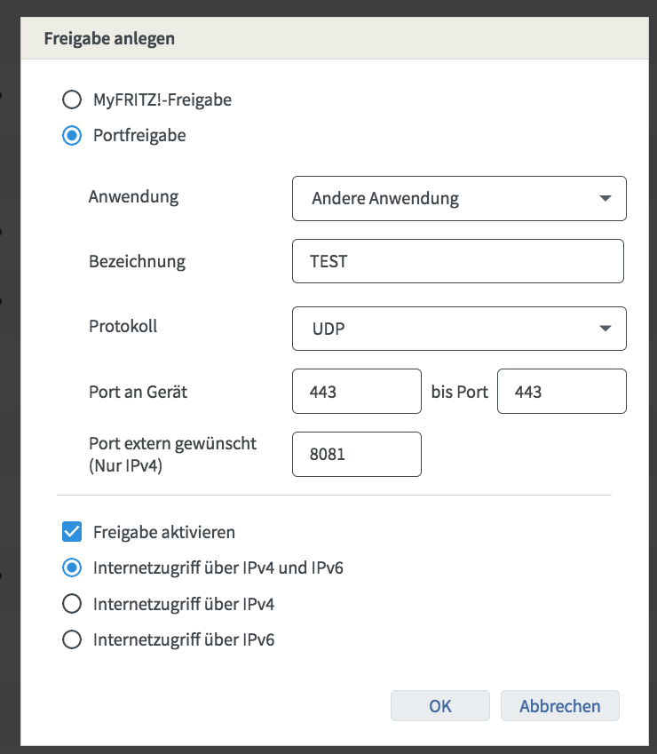 Muss ich da einfach den externen Port von aussen eintragen?