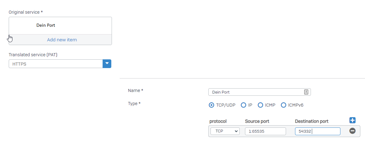 Wenn ich von aussen den Port z.B.: 54332 auf den Port 443 weiterleiten möchte, wie muss ich das anstellen, dass der Port weitergeleitet wird?