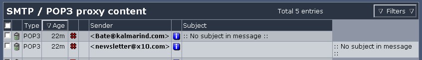 In the proxy content manager looking at blocked POP3 emails, I'm seeing three issues.