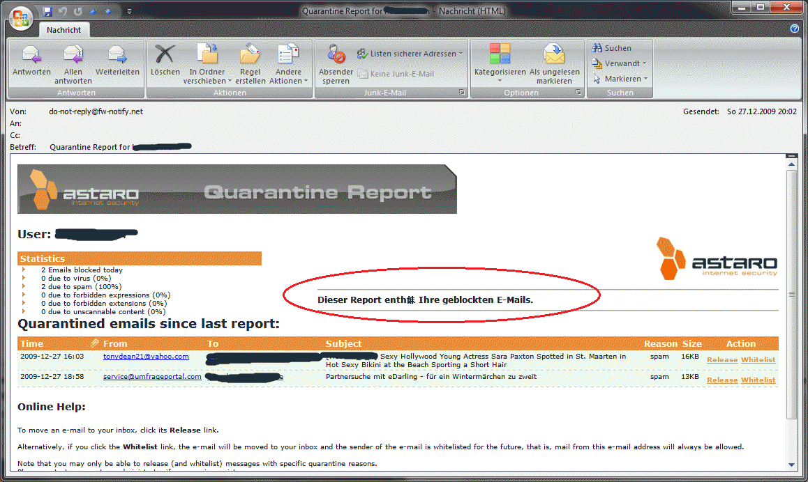 my customized texts for the quarantine reports and the release/whitelist screens include German umlauts.