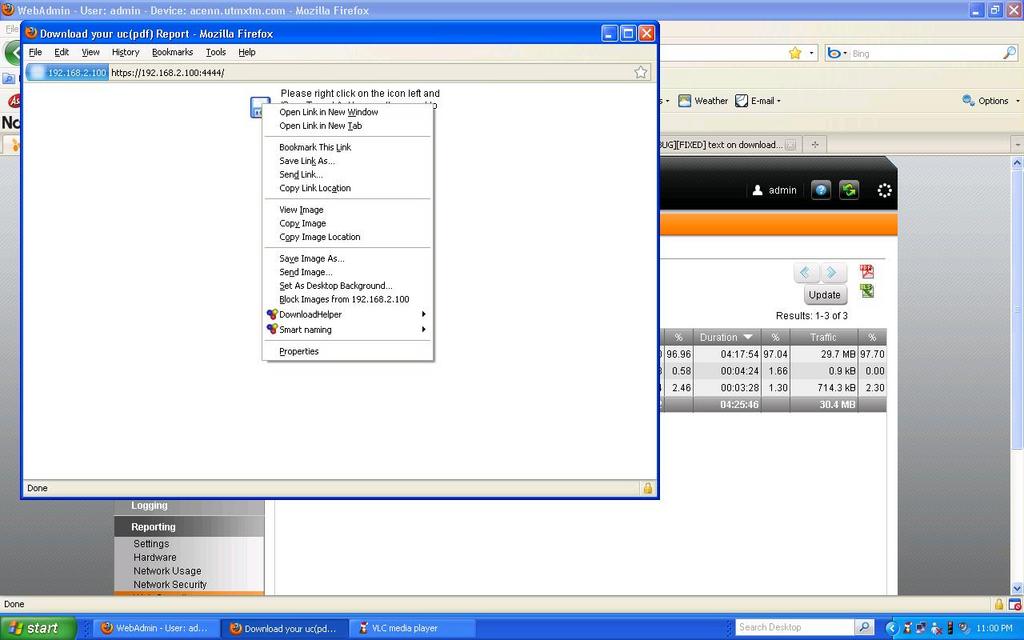 Network security >>packet filter >>download as a pdf /export report  in new box there is text "  Please right click on the icon left and 'Save Target As' to save the report to your harddisk.  "
