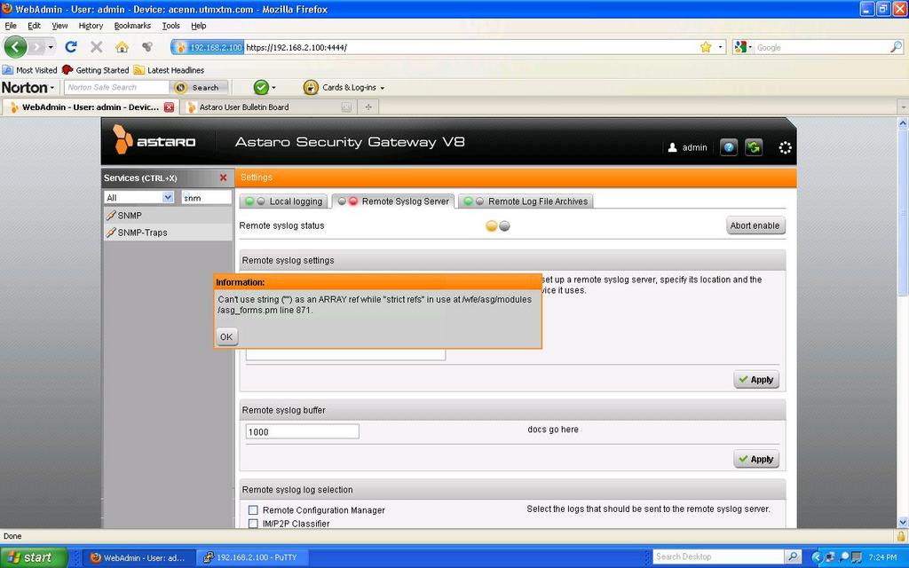 while adding syslog (logging>>remote syslog server) while adding a snmp port i am getting error