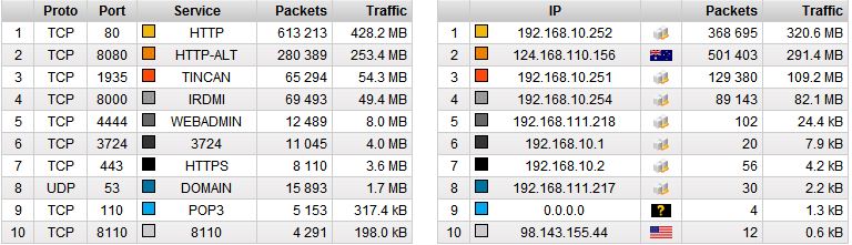 My pc 10.252 is used for the webadmin connections so there is additional traffic to be counted against it, which is approx another 9mb.