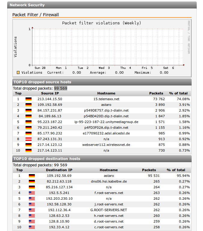 The graph for packetfilter violation in my weekly executive report from yesterday is empty allthough in the list there are about 100000 dropped packets.