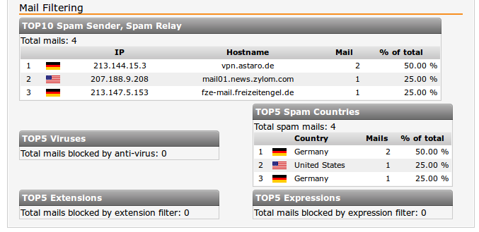 The sorting of emails in reporting and executive report isn't working properly. I found in my exec report in the list for "TOP5 Spam Countries" two lines for Germany (screen attached).