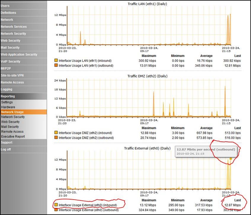 I don't know if this has been submitted before but when looking at network usage graphs in reporting, all the graphs are always tagged as "outbound" even when the traffic is inbound. I have tested on vista IE8 and FF3.6.2