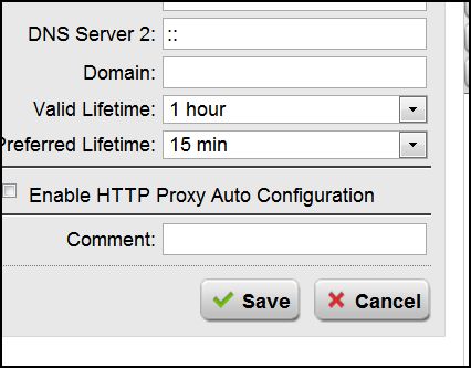 not sure if that had already been reported but setting both valid lifetime and prefered lifetime into dhcp settings to anything is not kept... when going back to edit dhcp settings it still the defaults ones...