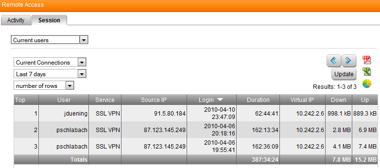 the Remote Access Reporting shows current users, although there is nobody online at the moment. Maybe it's related to the issue that S2S-VPNs are shown as users?
