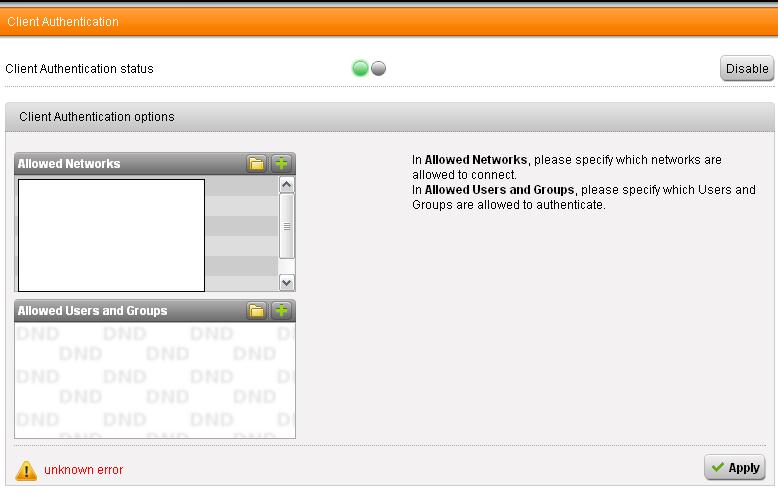 If you don't set allowed users to use the client authenticaiton mechanism and only define allowed networks , you get an "unknown error". Could we please change this error message?