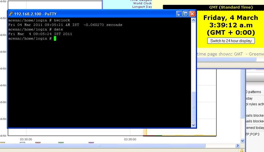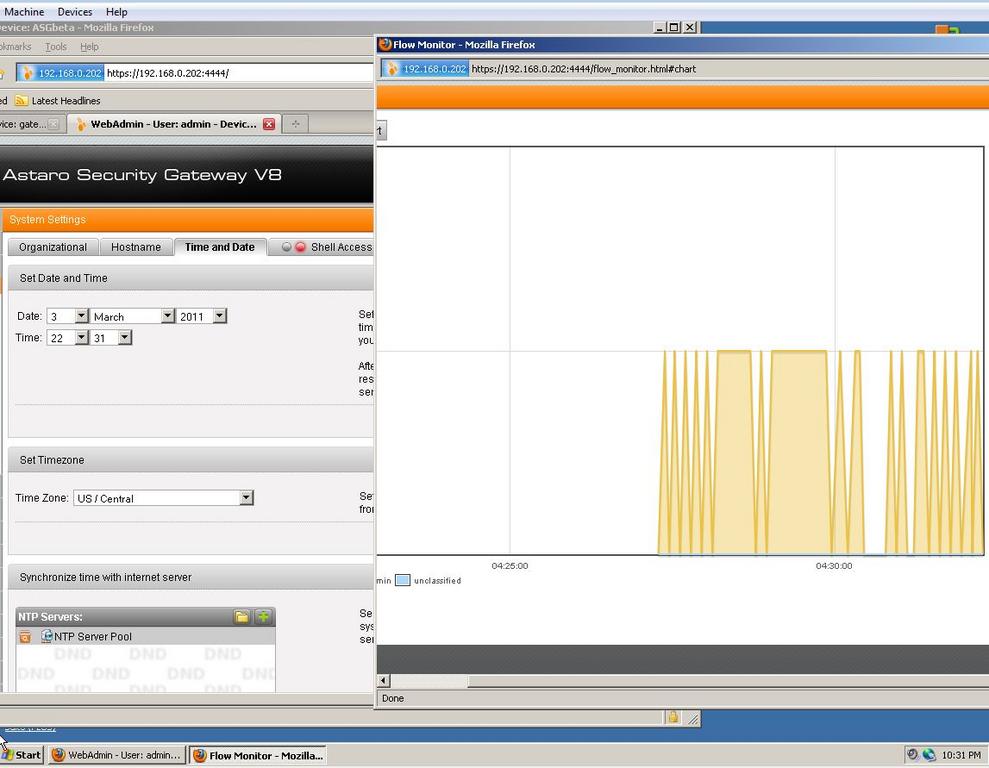 When I start the flow monitor from the dashboard the time is off by 5 hours.  I checked my Management/System Settings/Time Date and everything is set correctly.  I've attached a screen shot that includes the system tray time from XP.  I don't recall how I answered the UTM time question when installing from the ISO file.