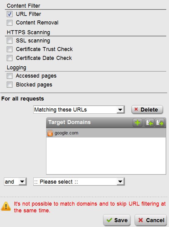 i was also able to edit to existing exception but i was not able to delete target domain  or add new
