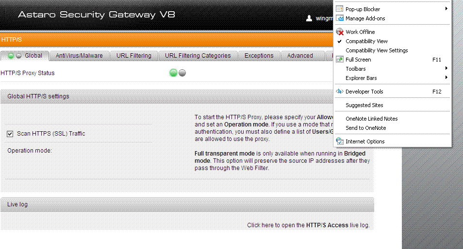 I am unable to get the "open live log" button for HTTP using ie 8 (compatibility mode)-pic attached. I've tried to clear the cache/temporary files with no luck