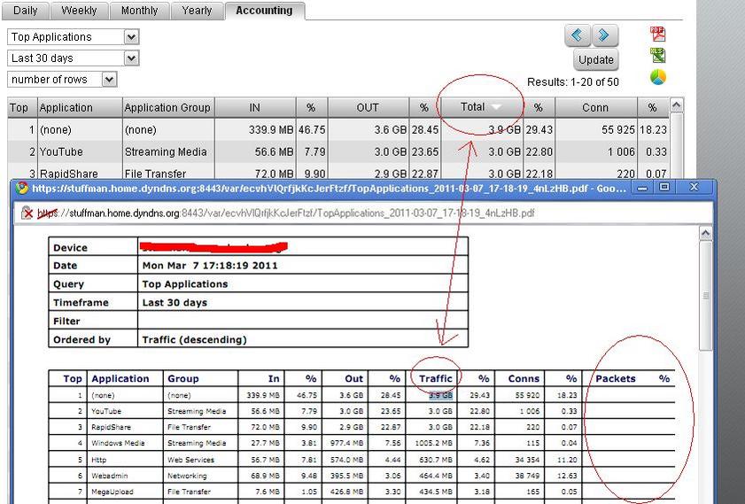I've jsut exported as pdf a  report for "top application" for the past 30 days and I 've noticed the following: