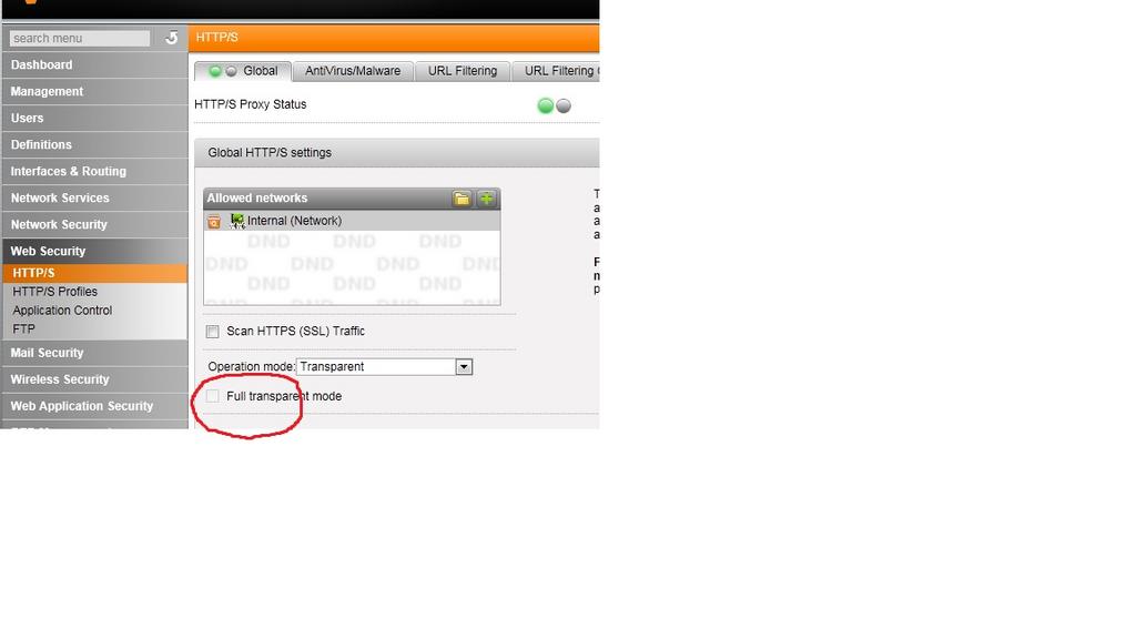 When trying to enabled Full transparent mode fpr Default Profile (Global Profile) it is not possible.