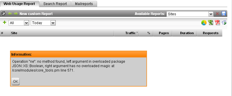 When trying to export to pdf (no data on the report ) I am getting the following error.Same thing happens on the next tab "Search report"